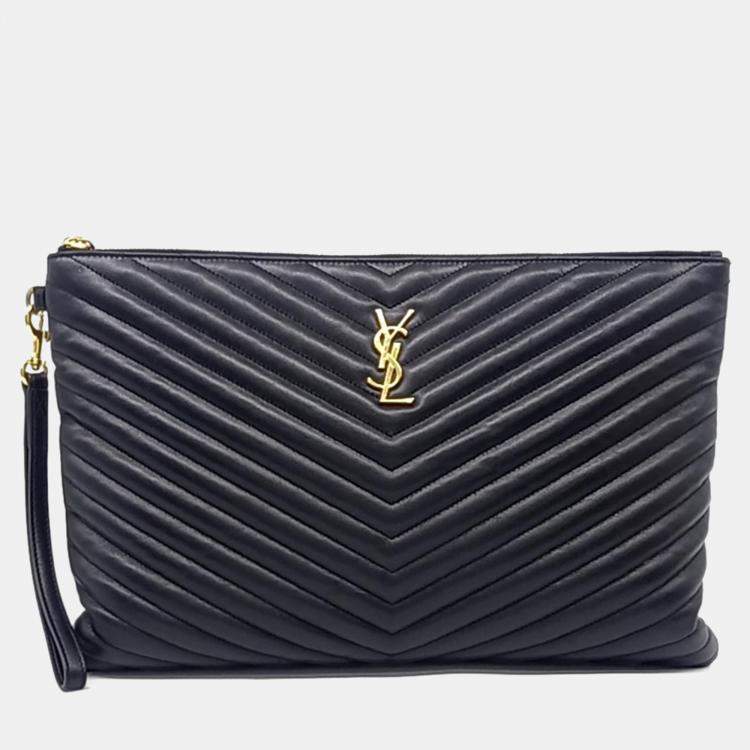 Pre Owned Saint Laurent Paris Black Leather Monogram Clutch