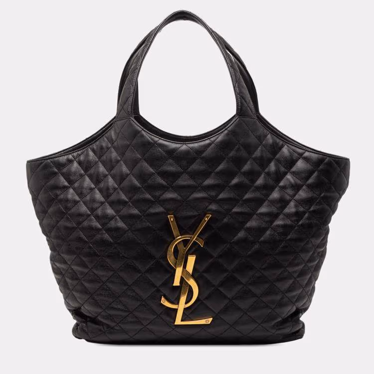 Saint Laurent Paris Black Maxi Quilted Lambskin Icare Shopping Tote