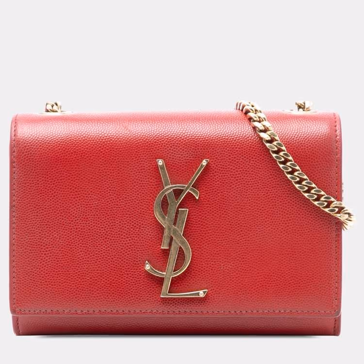 Pre Owned Saint Laurent Paris Red Small Leather Monogram Kate Crossbody