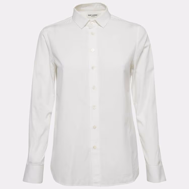 Pre Owned Saint Laurent White Cotton Long Sleeve Shirt M