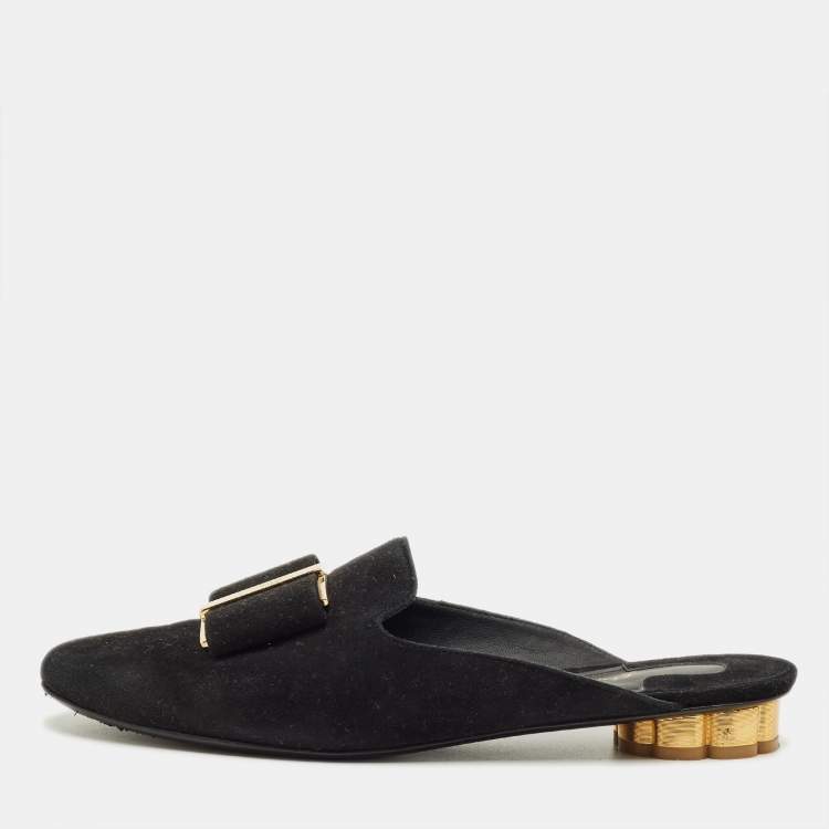 Pre Owned Salvatore Ferragamo Black Suede Vara Bow Mules Size 38