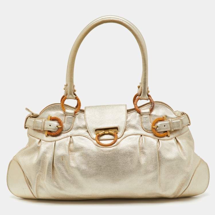 Salvatore Ferragamo Metallic Gold Leather Marisa Shoulder Bag