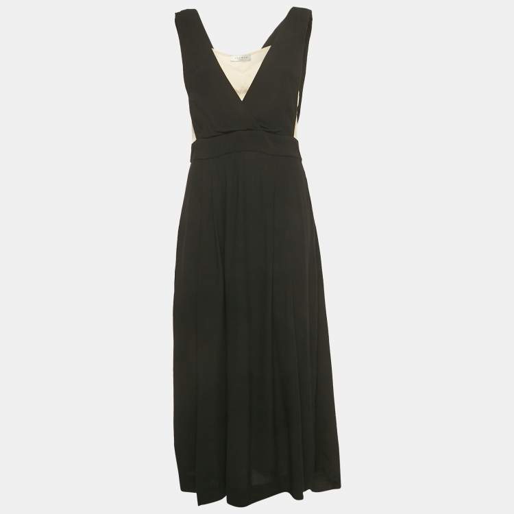 Pre Owned Sandro Black /Beige Crepe Sleeveless Midi Dress L
