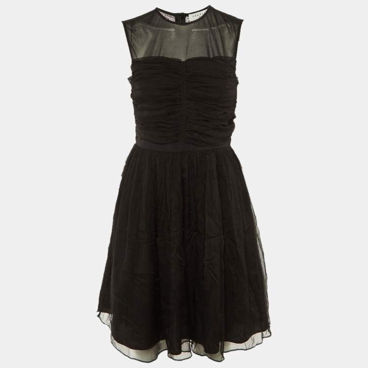 Pre Owned Sandro Black Silk Chiffon Ruffled Mini Dress M