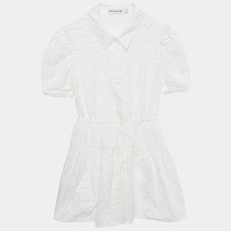 Self-Portrait White Broderie Anglaise Cotton Mini Dress M