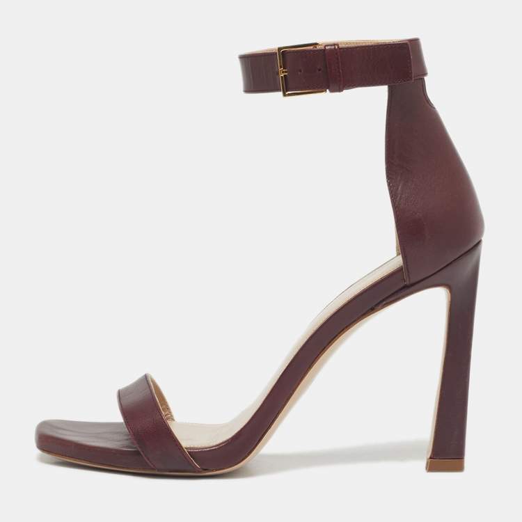 Stuart Weitzman Burgundy Leather Nudist Ankle Strap Sandals Size 37.5