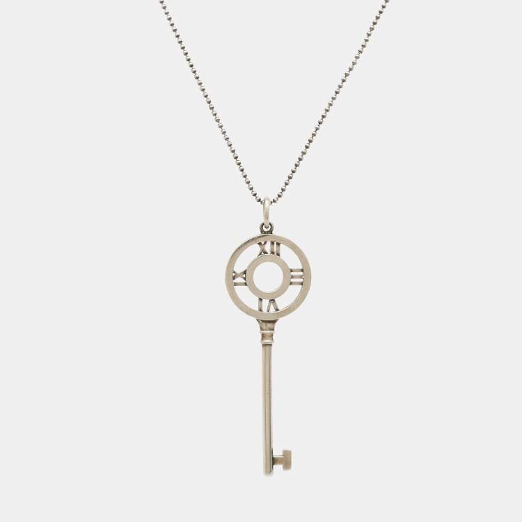 Pre Owned Tiffany & Co. Atlas Key Silver 925 Pendant Beaded Chain Necklace