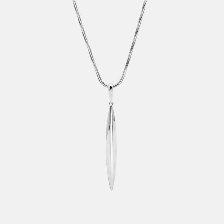 Tiffany & Co. Feather Pendant 18k White Gold Snake Chain Pendant Necklace