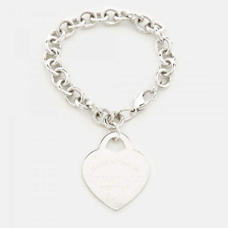 Pre Owned Tiffany & Co. Return to Tiffany Sterling Silver Heart Tag Large Charm Bracelet
