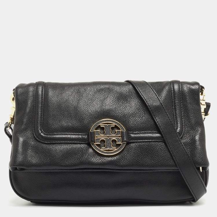 Tory Burch Black Leather Amanda Foldover Crossbody Bag