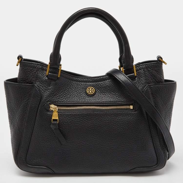 Pre Owned Tory Burch Black Leather Double Pocket Satchel