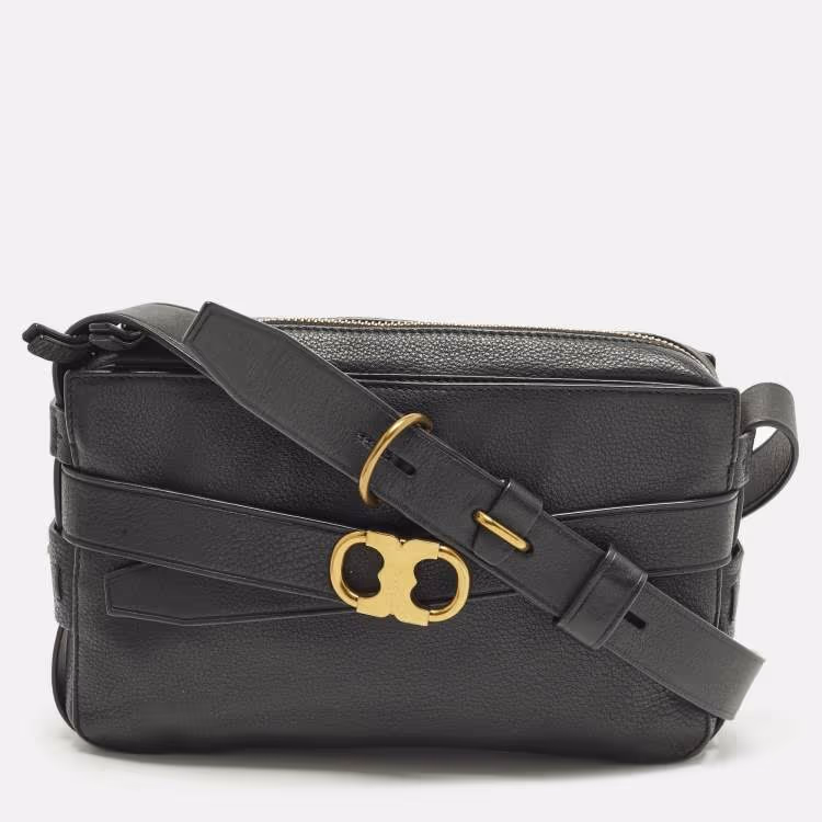 Tory Burch Gemini Link Black Leather Camera Crossbody Bag