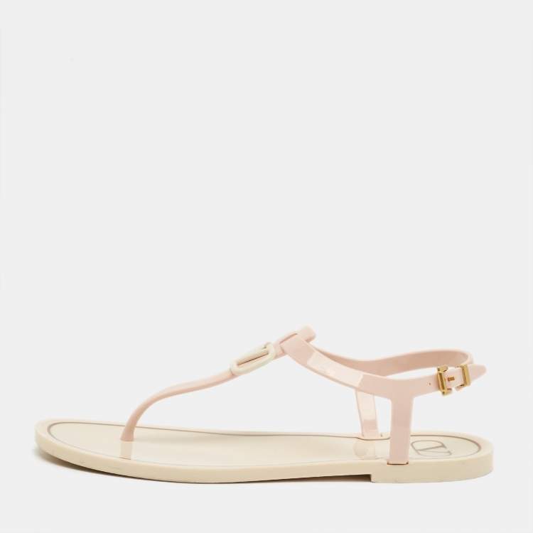 Valentino Cream Jelly VLogo Thong Flats Size 38