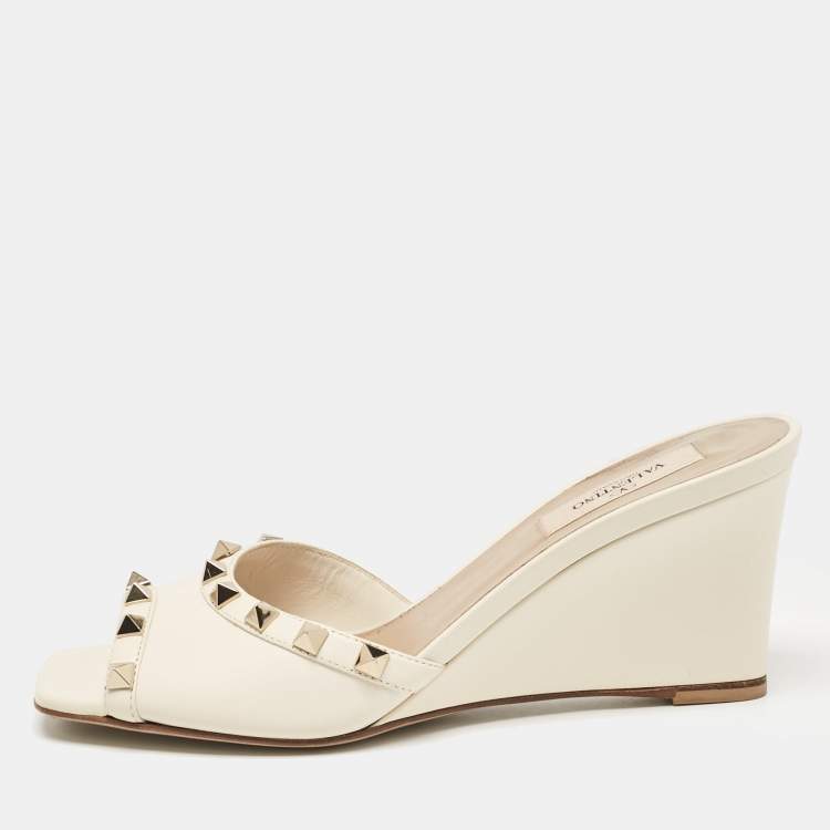Valentino Cream Leather Rockstud Wedge Sandals Size 37