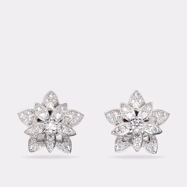 Van Cleef & Arpels 18K White Gold and Diamond Lotus Openwork Earrings