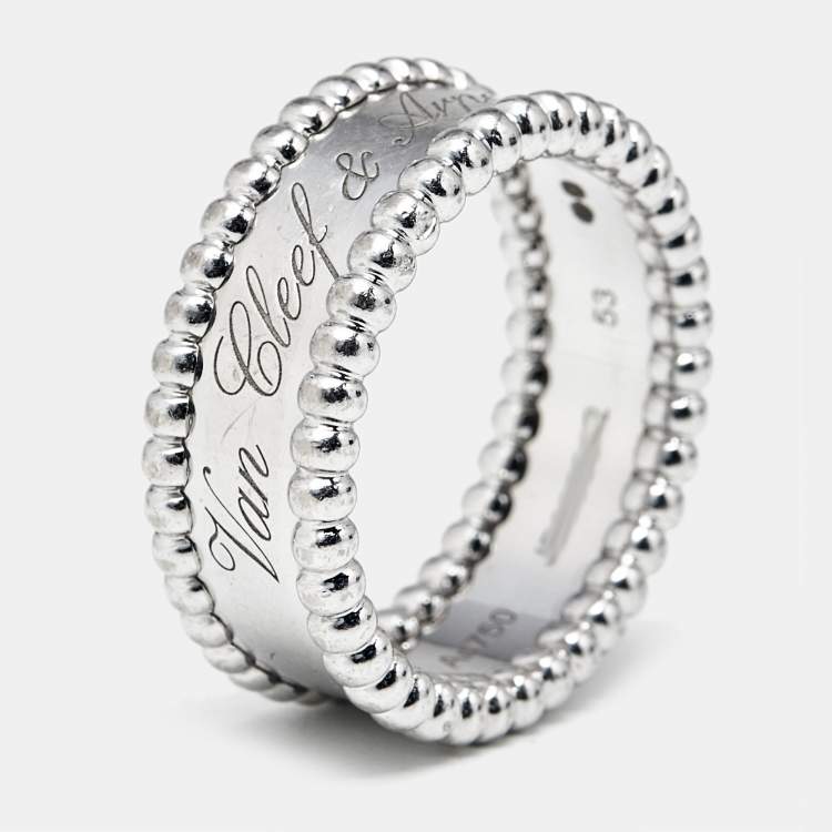Van Cleef & Arpels Perlée 18k White Gold Ring Size 53