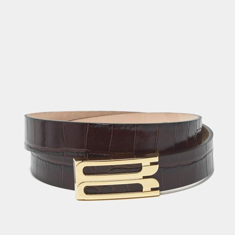 Victoria Beckham Brown Croc Embossed Leather Dorian Belt 70 CM