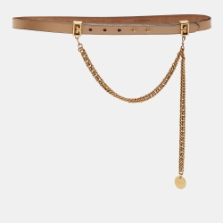 Givenchy Beige Leather Chain Detail Slim Belt 70 CM