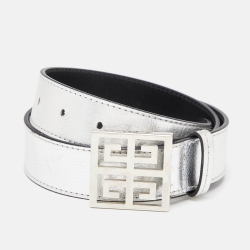 Givenchy Metallic Grey Leather Wide Waist Belt S