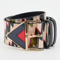 Kenzo Multicolor Printed Patent Leather Triangular Buckle Belt S
