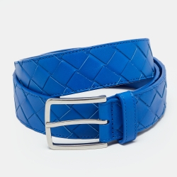 Bottega Veneta 100 CM Buckle Belt Blue Intrecciato Leather