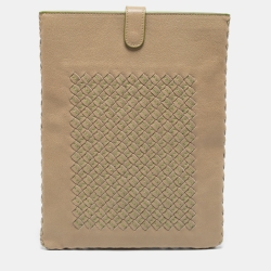 Bottega Veneta Beige/Green Intrecciato Leather iPad Case