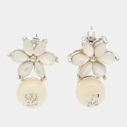 Carolina Herrera Jasmine Mother of Pearl Resin Silver Tone Drop Earrings