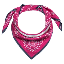Cartier Pink Geometric Panther Motif Print Silk Square Scarf