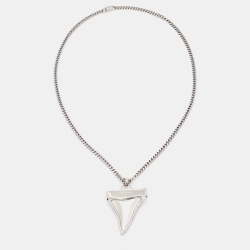 Givenchy Silver Tone Shark Tooth Pendant Chain Necklace