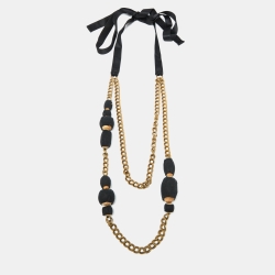 Marni Leather Gold Tone Chain Link Pendant Necklace