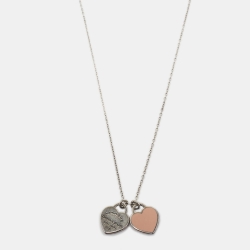Tiffany & Co. Return To Tiffany Double Heart Tag Enamel Silver Pendant Necklace