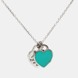 Tiffany & Co. Return To Tiffany Blue Enamel Double Heart Tag Pendant Necklace