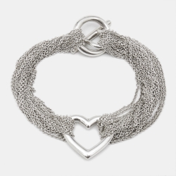 Tiffany & Co. Heart Mesh Sterling SilverChain Multi Strand Silver Toggle Bracelet