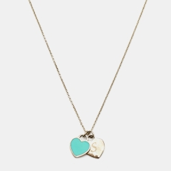 Tiffany & Co. Return to Tiffany Enamel Double Heart Tag Sterling Silver Pendant Necklace