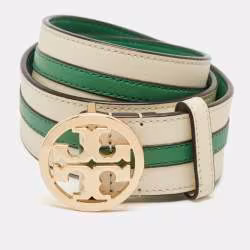 Tory Burch Green/Cream Leather Logo Buckle Belt XS