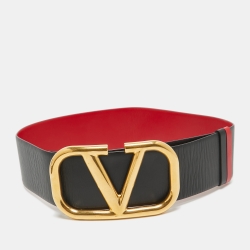 Valentino Black/Red Leather VLogo Reversible Wide Belt 105 cm