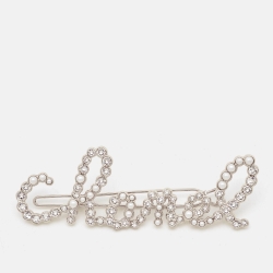Chanel Logo Crystals Faux Pearl Gold Tone Hair Clip