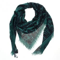 Alexander McQueen Green Leopard & Skull Print Cashmere and Silk Square Scarf