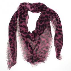 Alexander McQueen Fuchsia Leopard & Skull Print Cashmere and Silk Square Scarf