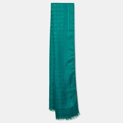 Bvlgari Green Logomania Stole Silk/Wool Shawl