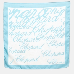 Chopard Vintage Light Blue/ White Logo Perfume Art Silk Square Scarf