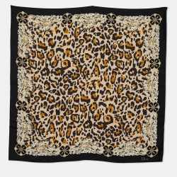 Dior Beige & Black Animal Bejeweled Print Silk Scarf