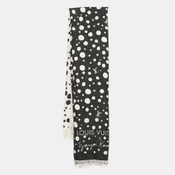 Louis Vuitton x Yayoi Kusama Black/White Dots Print Wool Blend Monogram Scarf