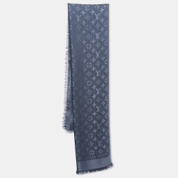 Louis Vuitton Blue Printed Silk Blend Monogram Scarf