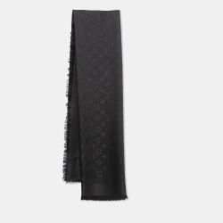 Louis Vuitton Black Silk & Wool Monogram Shine Shawl