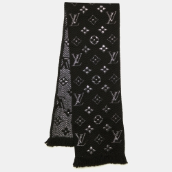 Louis Vuitton Black Wool & Silk Logomania Shine Scarf