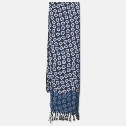 Tom Ford Blue Floral Print Silk Fringed Scarf