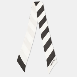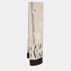 Valentino Black Akk-Over Logo Print Silk Chiffon Scarf