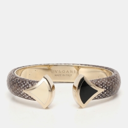 Bvlgari Serpenti Forever Metallic Black Embossed Leather Open Cuff Bracelet