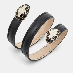 Bvlgari Serpenti Enamel Leather Gold Tone Wrap Bracelet